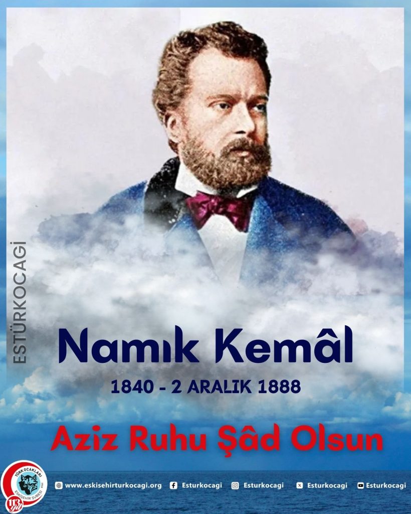 Türk milliyetçiliğine ilham kaynağı olmuş, Genç Osmanlı hareketi mensubu yazar, gazeteci, devlet adamı ve şair olan, “Yurtseverlik, Hürriyet, Millet kavramlarını Türk fikir hayatına ve edebiyatına dâhil eden, Vatan denilince ilk akla gelen “Vatan şairi”Namık Kemal’i (21 Aralık 1840-2 Aralık 1888) vefatının yıl dönümünde rahmet ve minnetle anıyoruz. Ruhu şâd Olsun.