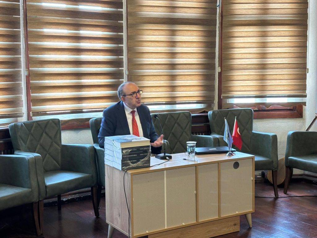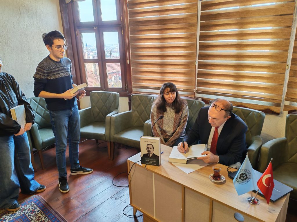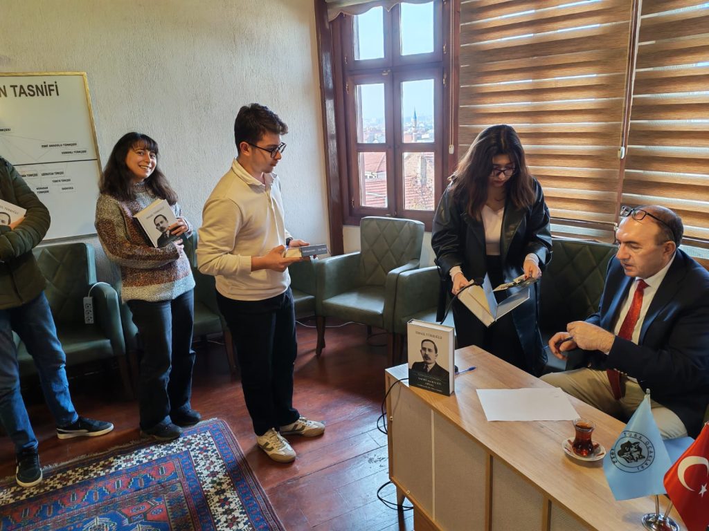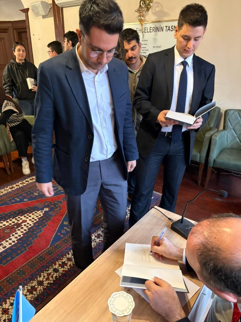 Seminer sonunda Prof. Dr. İsmail TÜRKOĞLU hocamız Sadri Maksudi Arsal kitabını öğrencilerimize hediye ederek imzalamıştır.