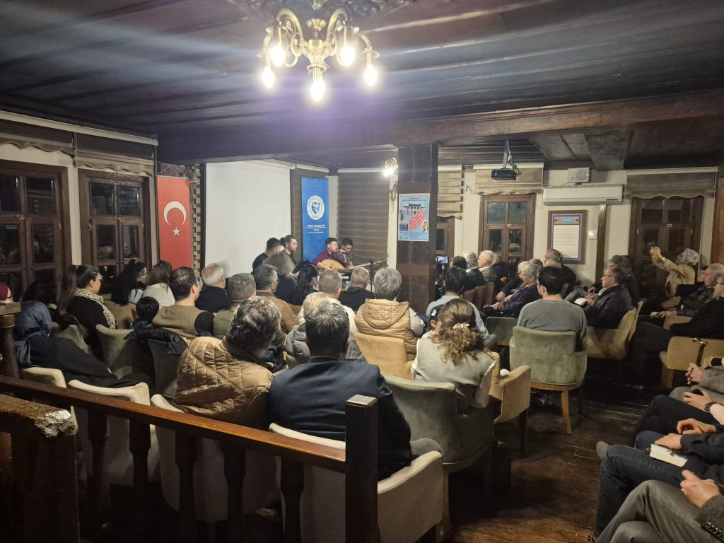 Solist ve udî Servet Akpınar’a, kanunda Egemen Kalkan, bağlamada Umutcan Açıkgöz ve ritim sazda Enes Çetinkaya eşlik ettiler. İlk bölümde birbirinden güzel türkülerimize ses verdiler. İkinci bölümde daha çok Muhayyer Kürdî, Uşşak ve Hicaz makamında Türk sanat müziği eserleri icra edildi. Ayrıca şube başkanı Nedim Ünal’ın talebi üzerine Servet Akpınar’ın okuduğu bozlaklar programa renk kattı.