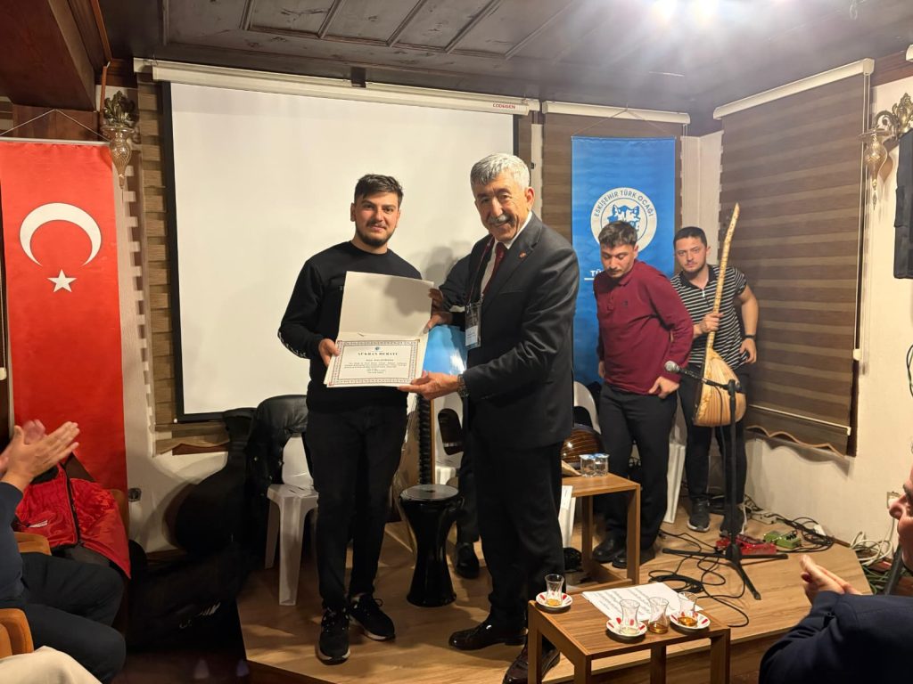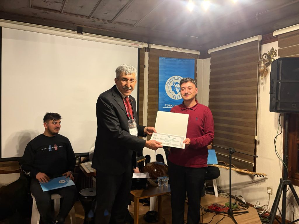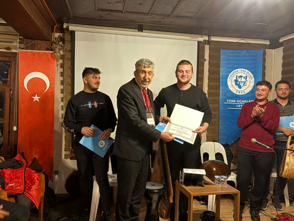 Konser sonunda Eskişehir Türk Ocağı Başkanı Prof. Dr. Nedim Ünal teşekkür konuşması ve sanatçılara şükran beratı takdim etti.