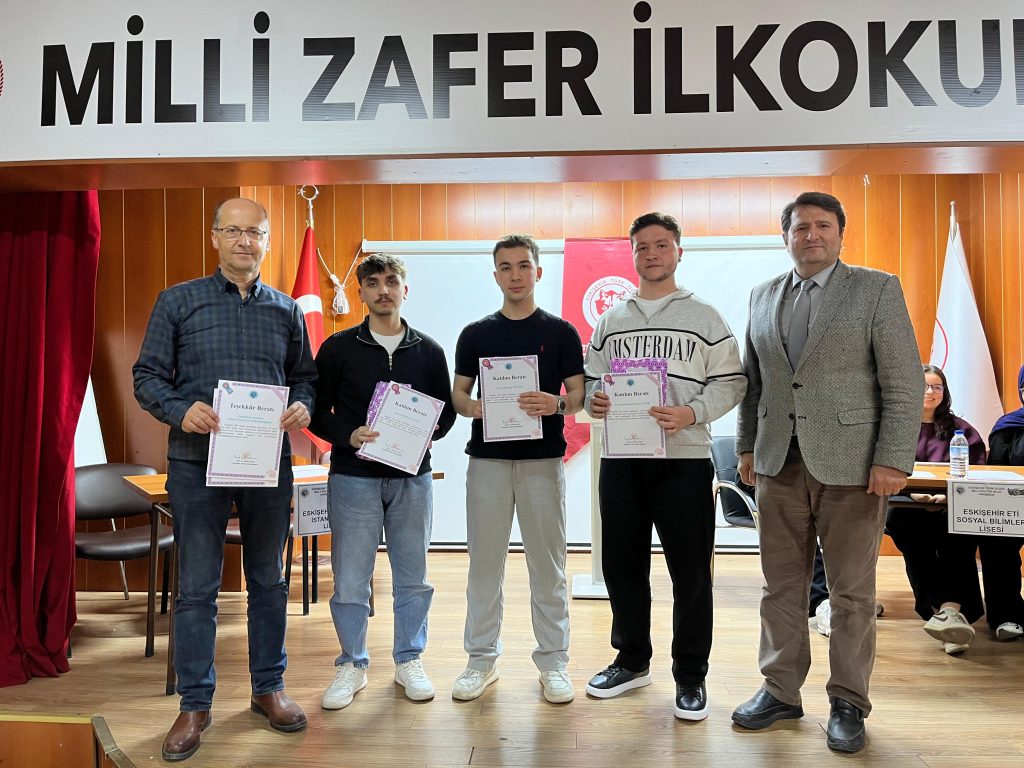 Birinci turda elenen okullarımızın öğrencilerine günün anısına Katılım Beratı ve kitap, danışman öğretmenlerine ve okul müdürlüklerine teşekkür beratı takdim edilmiştir.