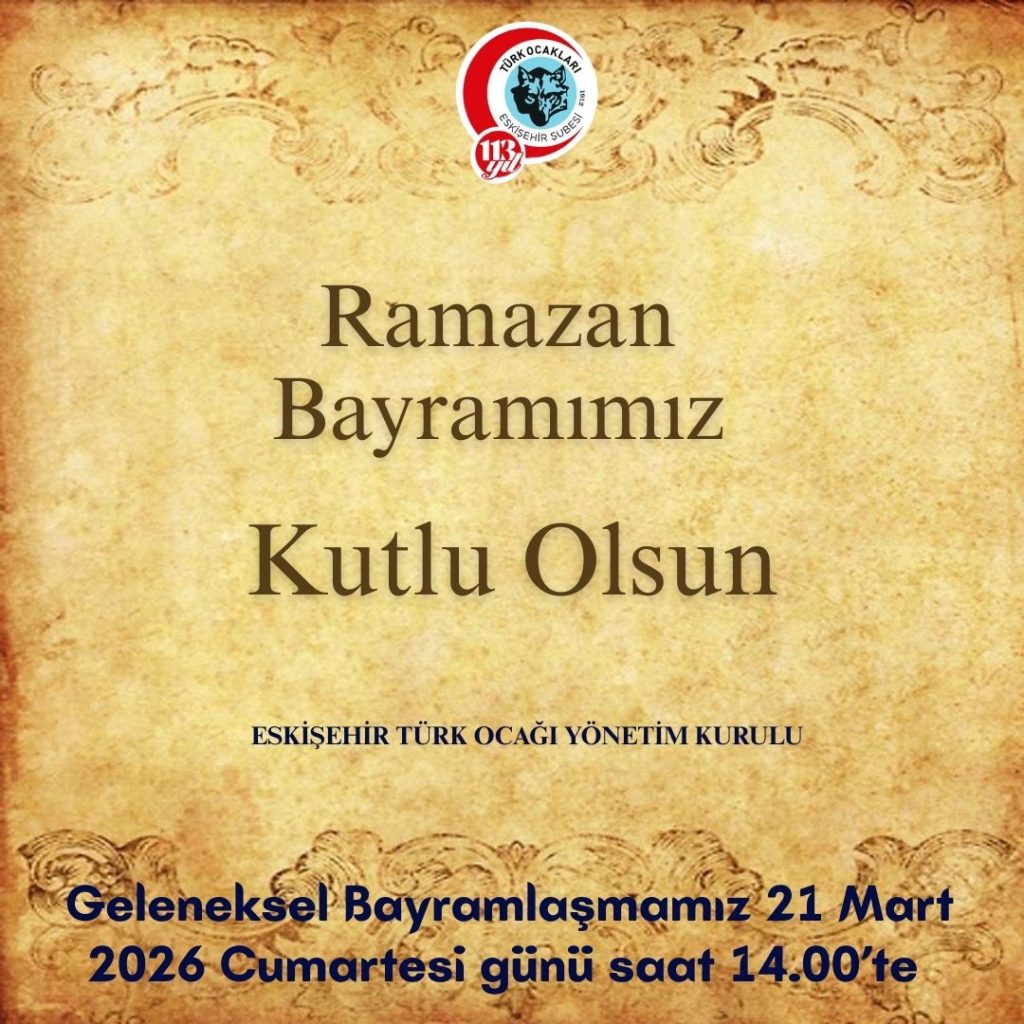 21.03.2026 ESKİŞEHİR TÜRK OCAĞINDA COŞKULU BAYRAM KUTLAMASI Bugün Ocağımızda büyük ve coşkulu katılımlı yapılan geleneksel bayramlaşma töreninde Ocak Başkanımız Prof. Dr. Nedim Ünal hocamız yaptığı konuşmada özetle: ” Bayramlaşma… Daha fazla okuyun: ESKİŞEHİR TÜRK OCAĞI GELENEKSEL BAYRAMLAŞMA - Ramazan Bayramımız Kutlu Olsun