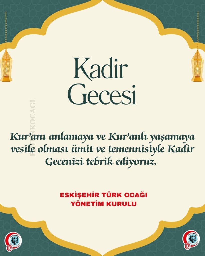 Kur’anı anlamaya ve Kur’anlı yaşamaya vesile olması ümit ve temennisiyle Kadir Gecenizi tebrik ediyoruz. - OSMAN TURAN BİLGİ ŞÖLENİ