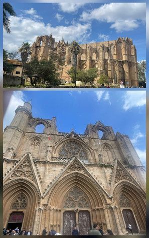 Burası surların içinde en önemli meydan, çünkü eski adıyla Aziz Nikola Katedrali, hemen ilerisinde Venedik Sarayı ve Namık Kemal Meydanı var. Her tarafı kilise ile dolu, her güne bir kilise düşüyor demeleri bundan dolayı olsa gerek. Nikola katedrali, Mağusa’daki en büyük ortaçağ yapısı imiş. 1298 ile yaklaşık 1400 yılları arasında o dönem adaya hâkim olan Fransız Lüzinyanlar döneminde Rayonnant Gotik üslupla inşa edilmiş, 1328 yılında Katolik bir katedral olarak kutsanmış. Kapıda taç figuri Kudus kralının kutsandığı mekân olduğunu gösteriyormuş.